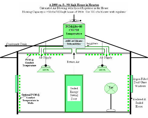 For a PCM cooled low humidity 7200 sq. ft. ware house click Air conditioned by PCM - Phase Change Material in Houston, USA.