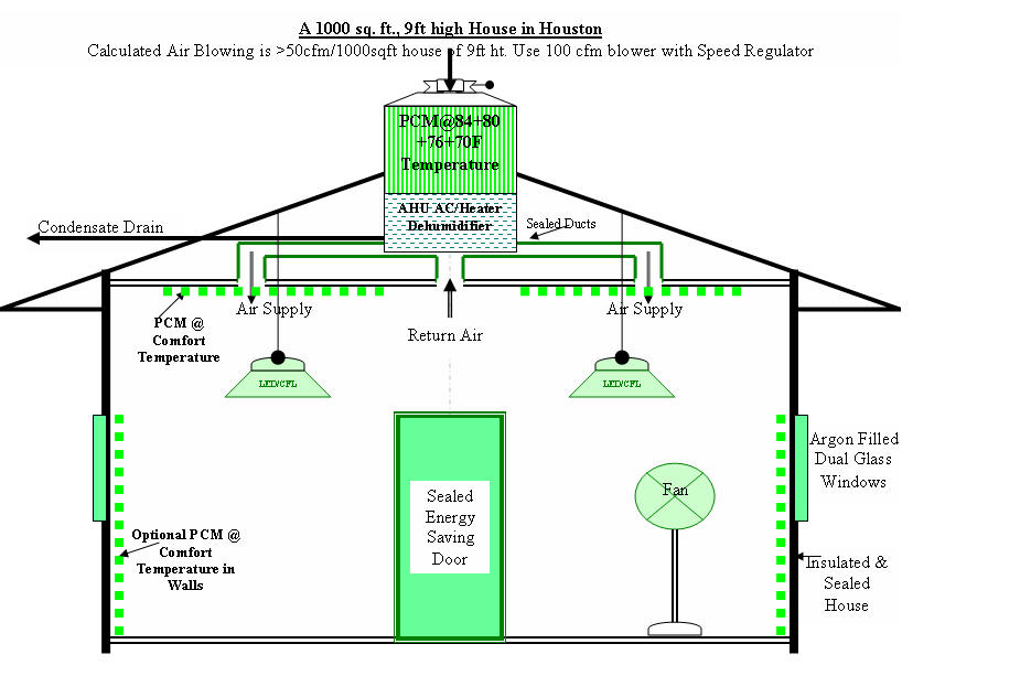 A. Pasupathy and R. Velraj, Department of Mechanical Engineering, College of Engineering ,Anna University, Chennai – 600 025An excellent method that practically switches off Air condition cooling AC and heater for almost 6 months a year is described by A J Kamdar. Until today only one small company which is in India is offering the Phase Change Material (PCM) that can be used in AC and heater at Human comfort temperature. Human comfort can be classed as between 19C (66F) and 29C (84F). Depending upon the region in which the people stay, they will adjust to relative cool or hot indoors. 19C (66F) will be fine for people in Northern tip of America but too cool for the people living near tropics. Similarly, 29C (84F) will be ok for tropical people but not for people in Chicago. Fortunately PCM can accommodate this change.